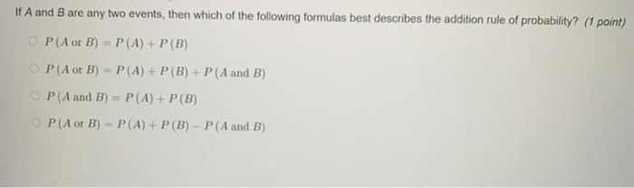 Which Of The Following Is The Best Description Of The Addition Rule Of Probability?