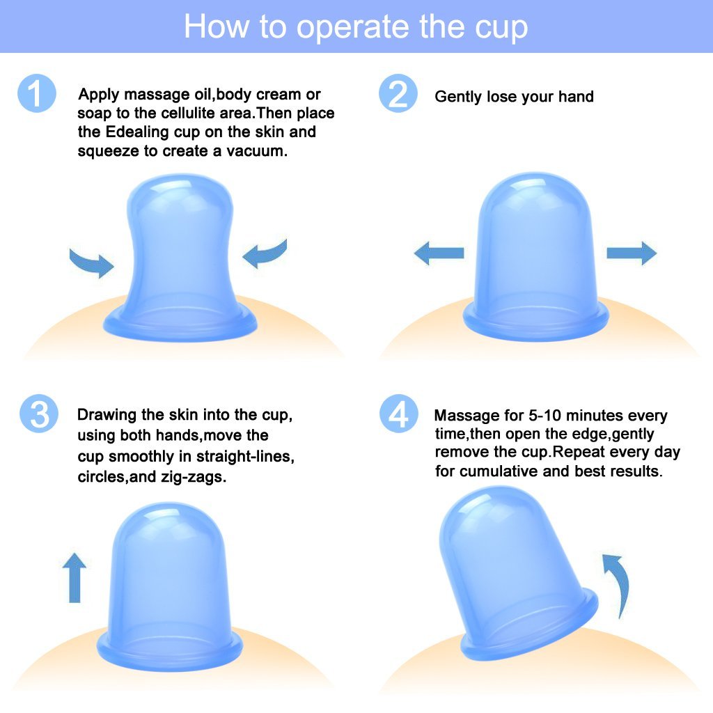 Anti Cellulite Cup with Cellulite Massager - Vacuum Suction Cup for Cellulite Treatment - Amazing Cellulite Remover - Good to Use with Cellulite Cream or Cellulite. Vacuum cups for cellulite are easy to use They may sound scientific but cellulite suction cups are actually just moulded silicone cups that are applied directly to the skin. How to Use Cellulite Suction Cups Properly First you need to use some kind of lubricant on the area that you want to massage to avoid friction.