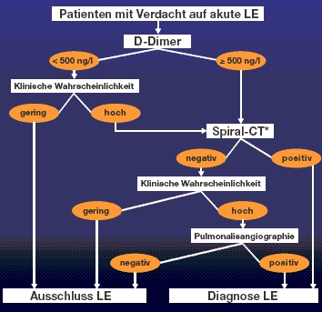 In diesen Fällen ist das D-Dimer meist erhöht. Ventilation in 4 Projektionen. Sind die D-Dimere erhöht ist auch bei nicht hoher KW eine zeitnahe bildgebende Diagnostik angezeigt.