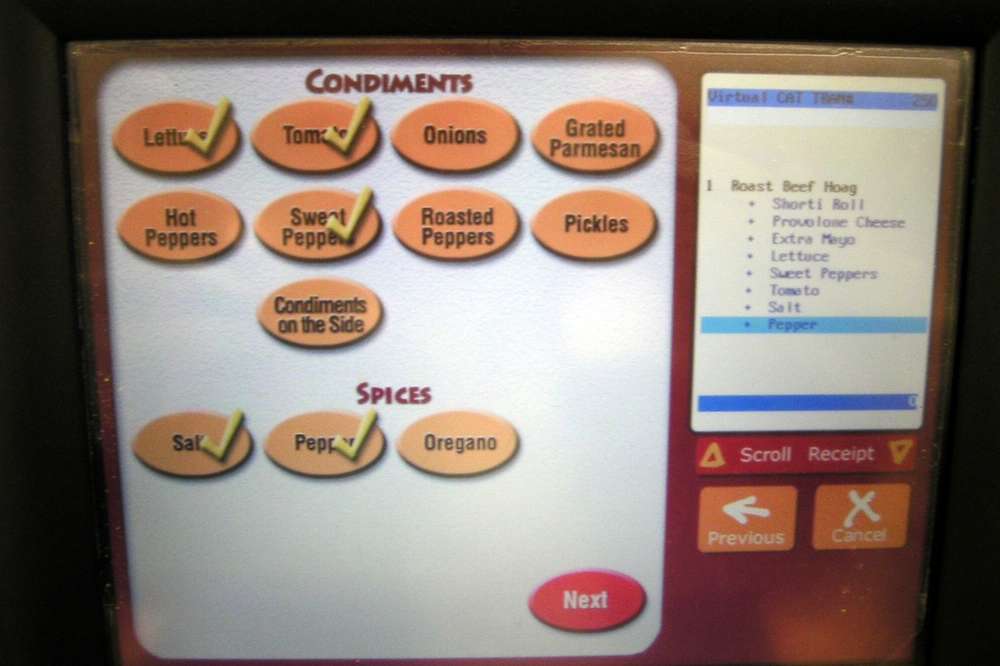 To place an order guests approach one of several kiosks with touchscreen terminals. The touch screen hoagie ordering system literally revolutionized the town and blasted it headfirst into the 21st century. American Swiss Provolone Choose your toppings.