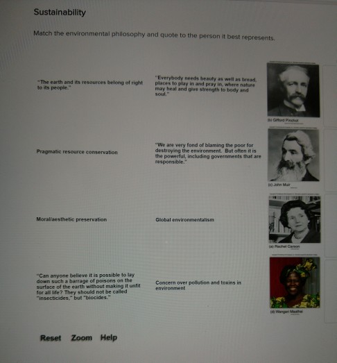 But often it is the powerful including governments that are responsible. Sustainability match the environmental philosophy and quote to the person it best represents everybody needs beauty as well as bread the earth and its resources belong of right places to play in and pray in where nahure to its people may heal and give strength to body and soul we are very fond of blaming the poor for destroying the.