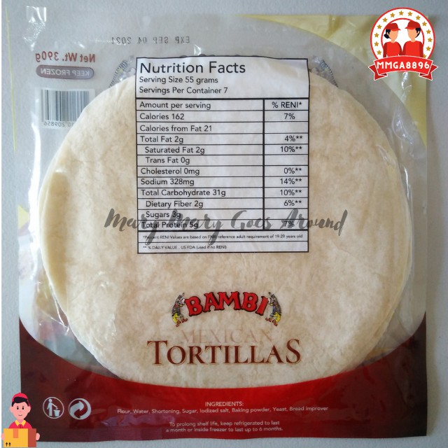 Per As sold One tortilla 61g - 174 calories 3 fat.