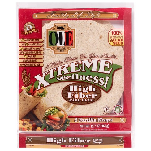 1 tortilla 40g Nutrition Facts. Ole Xtreme Wellness Tortilla Wrap. There are 94 calories in 1 medium Flour Tortilla. 130 calories of Whole Wheat Tortilla medium 45g 1 serving 53 calories of Monterey Cheese 050 slice 1 oz 50 calories of Oscar Mayer Turkey Breast 2 oz 1 serving 5 calories of Grey Poupon Dijon Mustard 1 tsp. 29 fat 58 carbs 13 prot. How many calories should I eat to lose weight. With 39 grams of fat contained in the wrap the bread only has 21 grams of fat and a carbohydrate rating of 23 grams while the wrap has 302 grams of carbs.